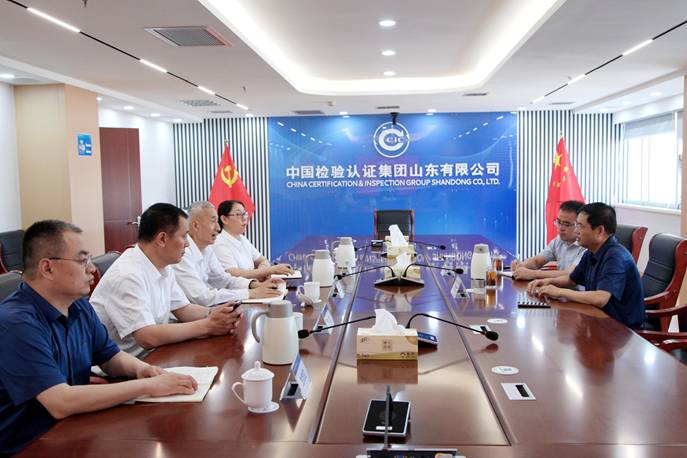 5 月 29 日,临沂国控集团党委书记、董事长鲁峰武一行到访中国中检山东公司,山东公司党委委员、副总经理倪新与到访嘉宾就深化合作、拓展业务领域展开深入交流。