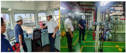 在潍坊港轮驳有限公司,双方就港口作业货物检验协作、船舶相关认证服务等事宜进行了交流。潍坊公司介绍了在商品检验、鉴定、测试以及认证咨询等方面的专业优势,表示愿为潍坊港轮驳公司提供全方位的技术支持和服务保障。潍坊港轮驳公司负责人对潍坊公司一行表示热烈欢迎,希望双方深化合作交流,借助潍坊公司的专业技术力量,提升港口作业质量和效率。在其负责人的陪同下,潍坊公司一行登上拖轮,学习参观了拖轮的内部结构和作业过程。