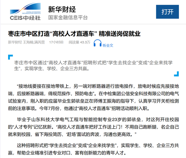 近日,中检公信引才工作获新华财经网专题报道,进一步提升了中检公信的知名度和美誉度。