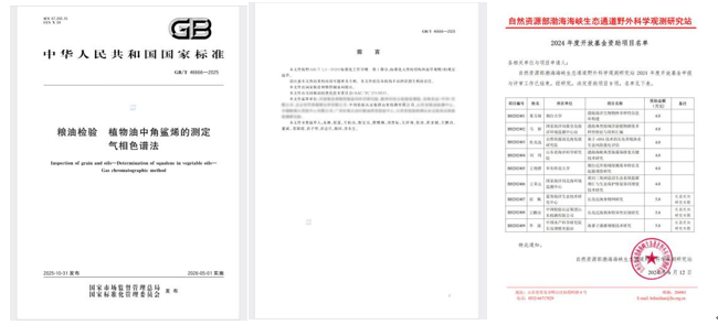 农食产品与健康事业部党总支成立以来,聚焦行业技术需求,组建党员科技攻关小组,将攻坚任务落实到一线,主动参与国家标准、团体标准制定等工作,有效填补多项行业技术空白。2025年度,作为主要起草单位编制的国家标准《粮油检验 植物油中角鲨烯的测定 气相色谱法》(GB/T 46666-2025)、团体标准《原木直径、材积智能检量技术》(T/CTWPDA 18-2024)已正式发布实施;省部级重点项目《长岛近海刺参特异性识别研究》成功立项,并获得自然资源部开放基金资助;新立项《饲料中重金属铅、镉检测方法研究》《超痕量油田水性示踪剂检测方法研究》2项标准研制任务,一系列成果有力推动了相关行业技术的规范化、标准化发展。