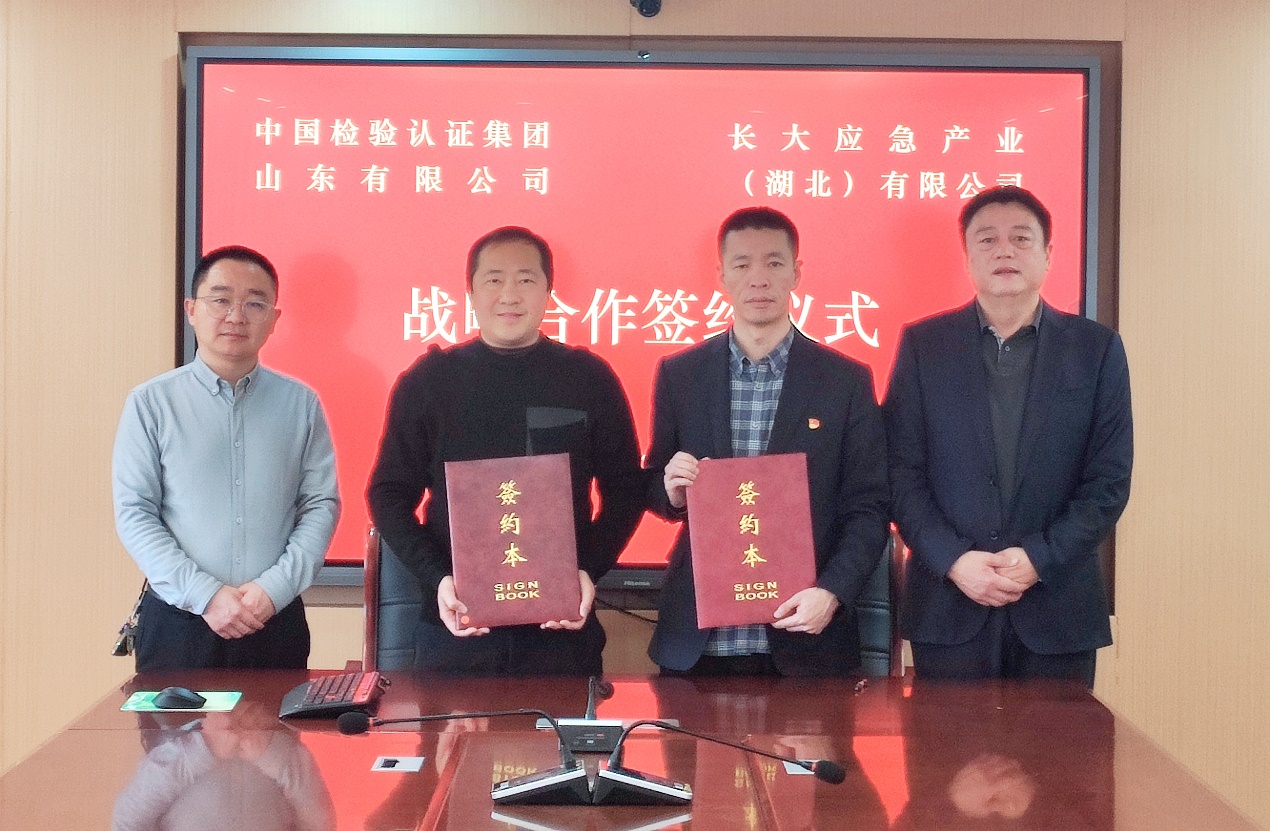 1月20日,中国中检山东公司与长大应急产业(湖北)有限公司在山东青岛正式签署战略合作协议。长大应急产业(湖北)有限公司董事长刘运红与中国中检山东公司工业服务事业部总经理分别代表双方签署协议并交换协议文书。中国中检山东公司副总经理刘志腾参加签约仪式。