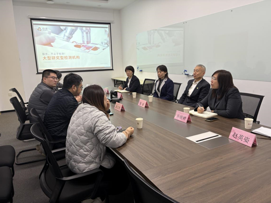 在微谱公司,中药大健康事业部总经理魏安凯详细介绍了其核心业务及医药检测领域经营成果。倪新对微谱集团的发展成绩与专业实力给予高度认可,并介绍了中国中检山东公司业务布局与资源优势。双方就资质建设、实验室运营、市场开拓、收并购整合等方面交流经验,并达成深度合作共识。双方一致认为,在医药检测等领域高度契合、互补性强,具备广阔的合作空间。会后,倪新、王卓君一行实地参观了微谱实验室。
